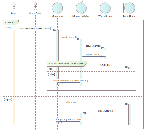 Model / KlubarKu / 4. Sequence Diagram / 2. SD - Melakukan Login dan Logout / 2. SD - Melakukan Login dan Logout